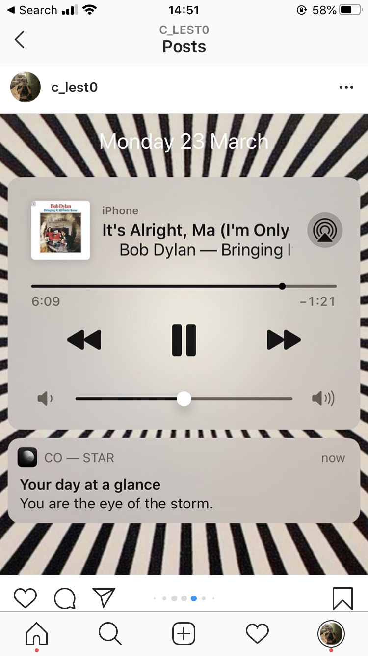 Recently I posted on Instagram a series of images within my day- so I thought I’d share on this platform in relation to my project. As a lot of my days look pretty similar (with a few varying factors)