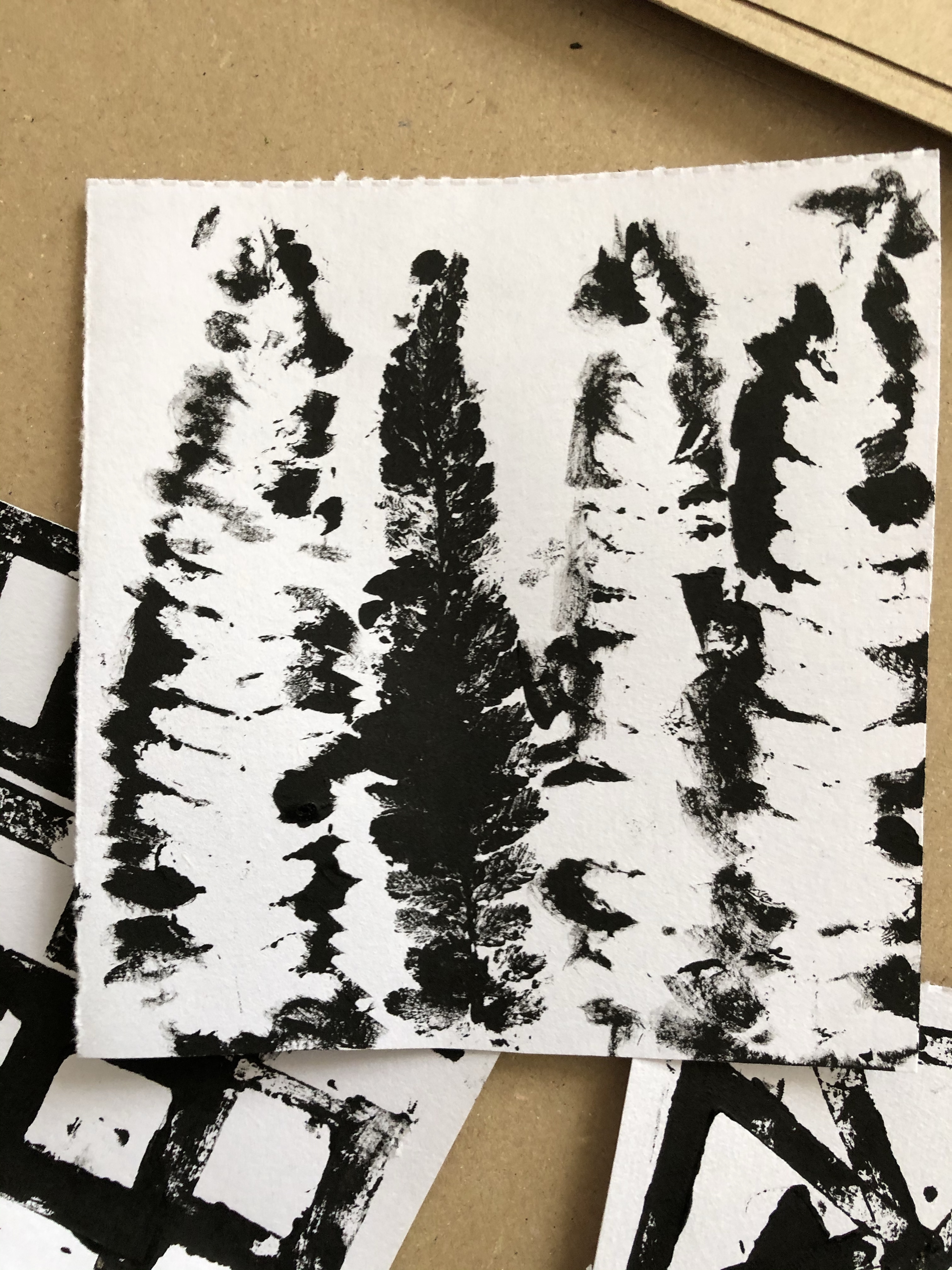 So yesterday I set the task for myself of making a little book of all the different marks I could make. So on Monday night- after work, I went on a walk down the meadows to collect some bits to print with. I decided upon a few leaves and the rest was pretty soggy. So I had to be resourceful.