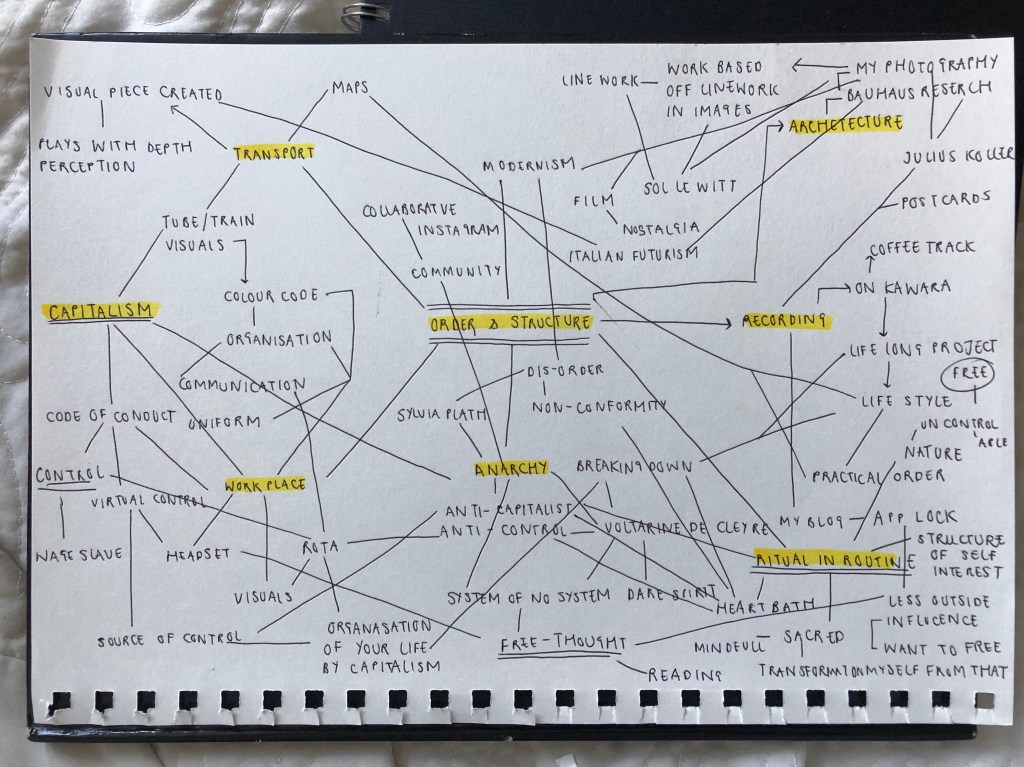 After my last peer assessment, we identified that something that was a weakness within the project was my lack of connecting the dots. I have so many ideas and tend to jump from one to one- which is especially hard without a studio- or resources to create a visual board of my progress. As without a visual time-line I can tend to get lost in what I am doing and forget what I aimed to do.