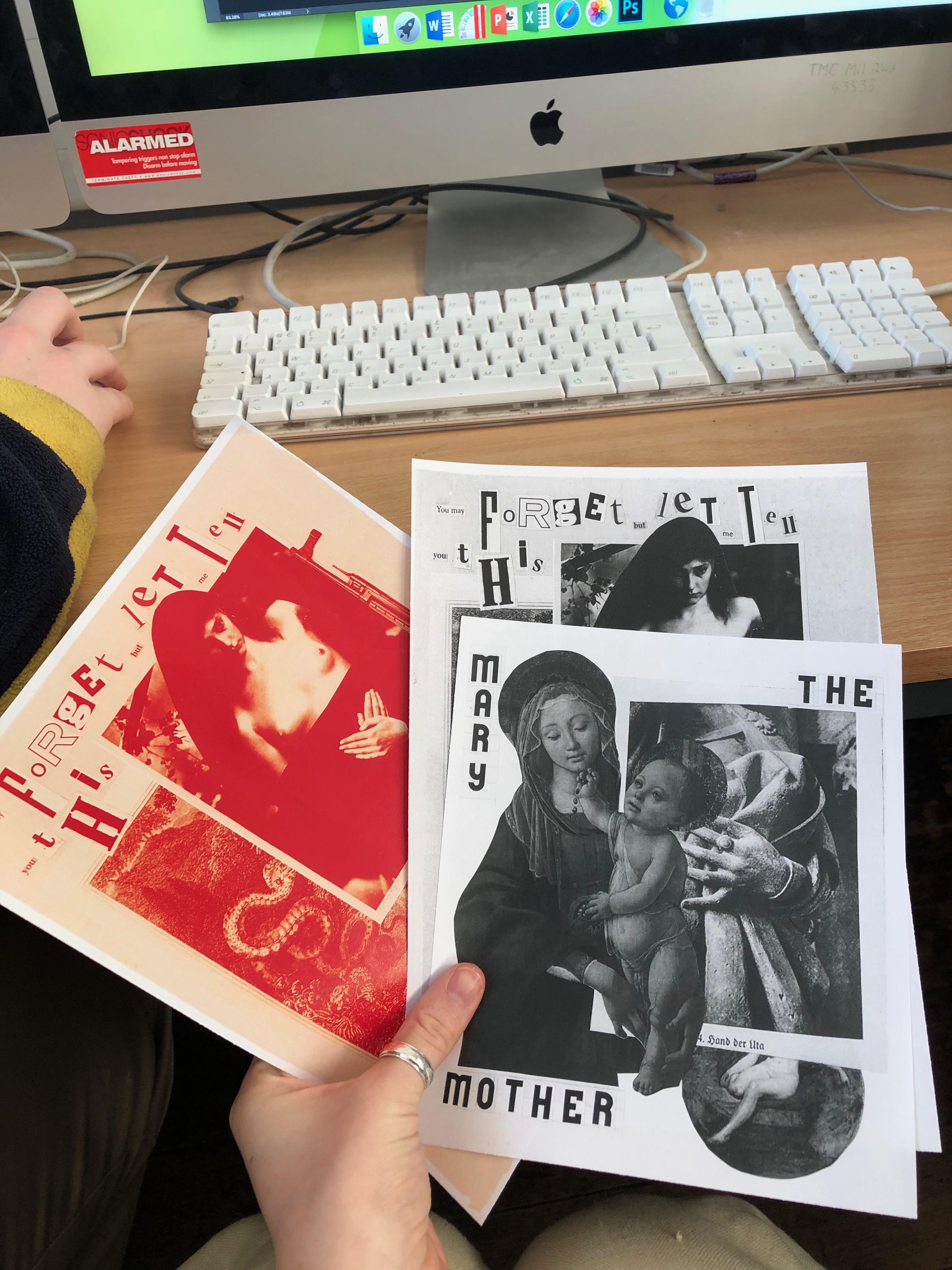 This is when I decided to create a zine. It was the perfect way to document my process and exhibit all of my favourite pieces without having to seal the project shut. However- creating a zine required me to use photoshop and In-design to create it digitally. So it could be sent to print (for 50+ copies).
