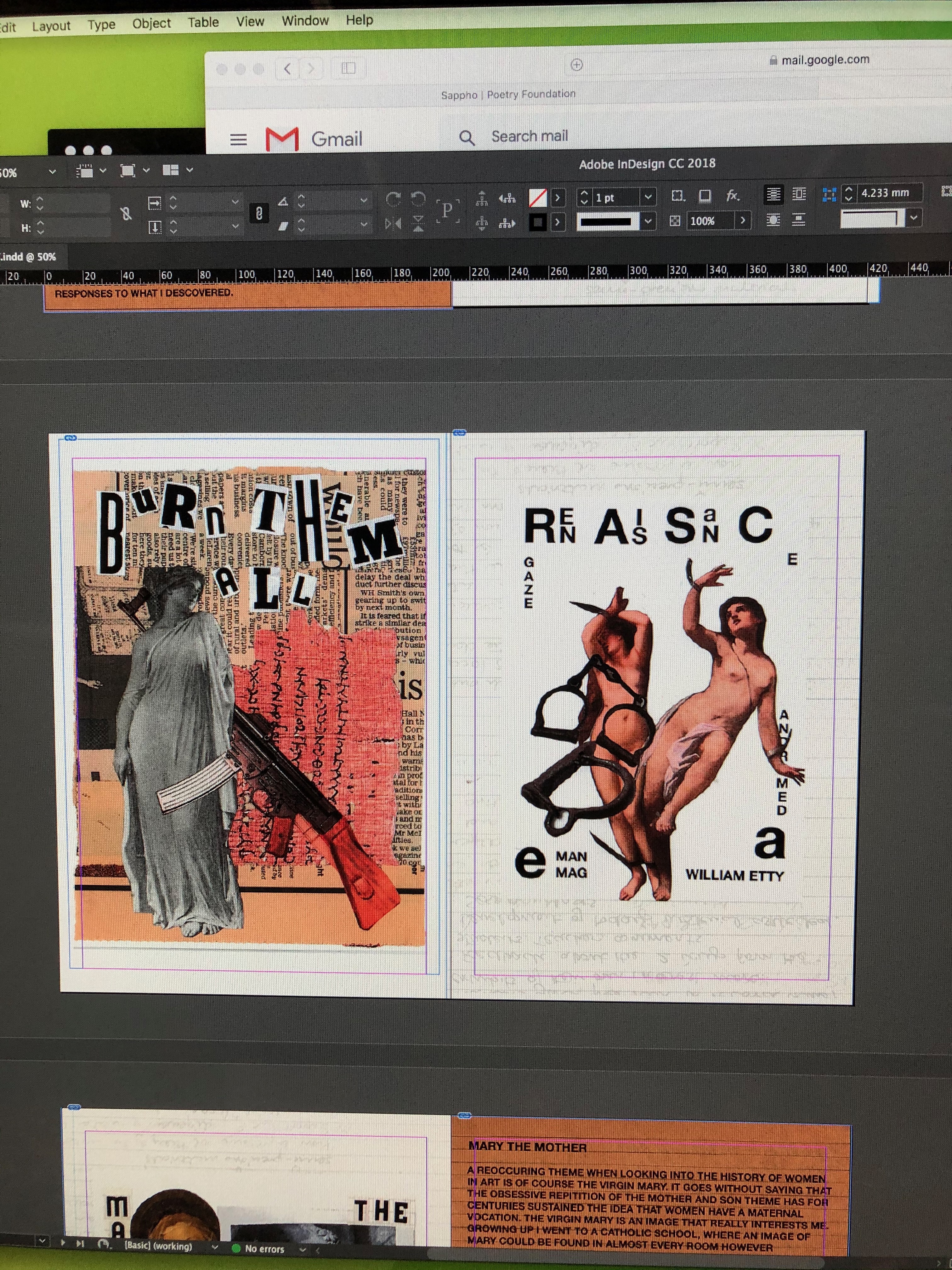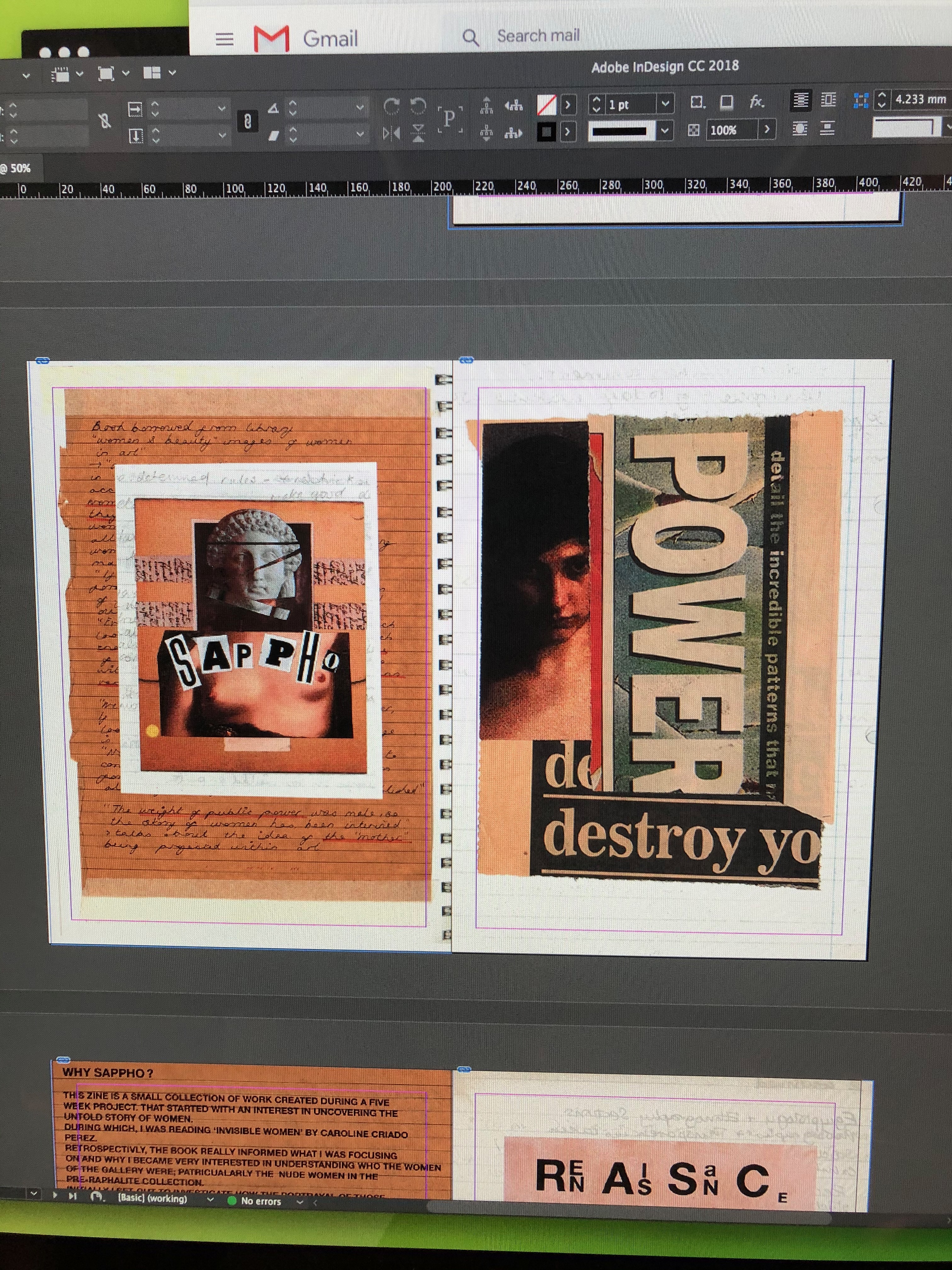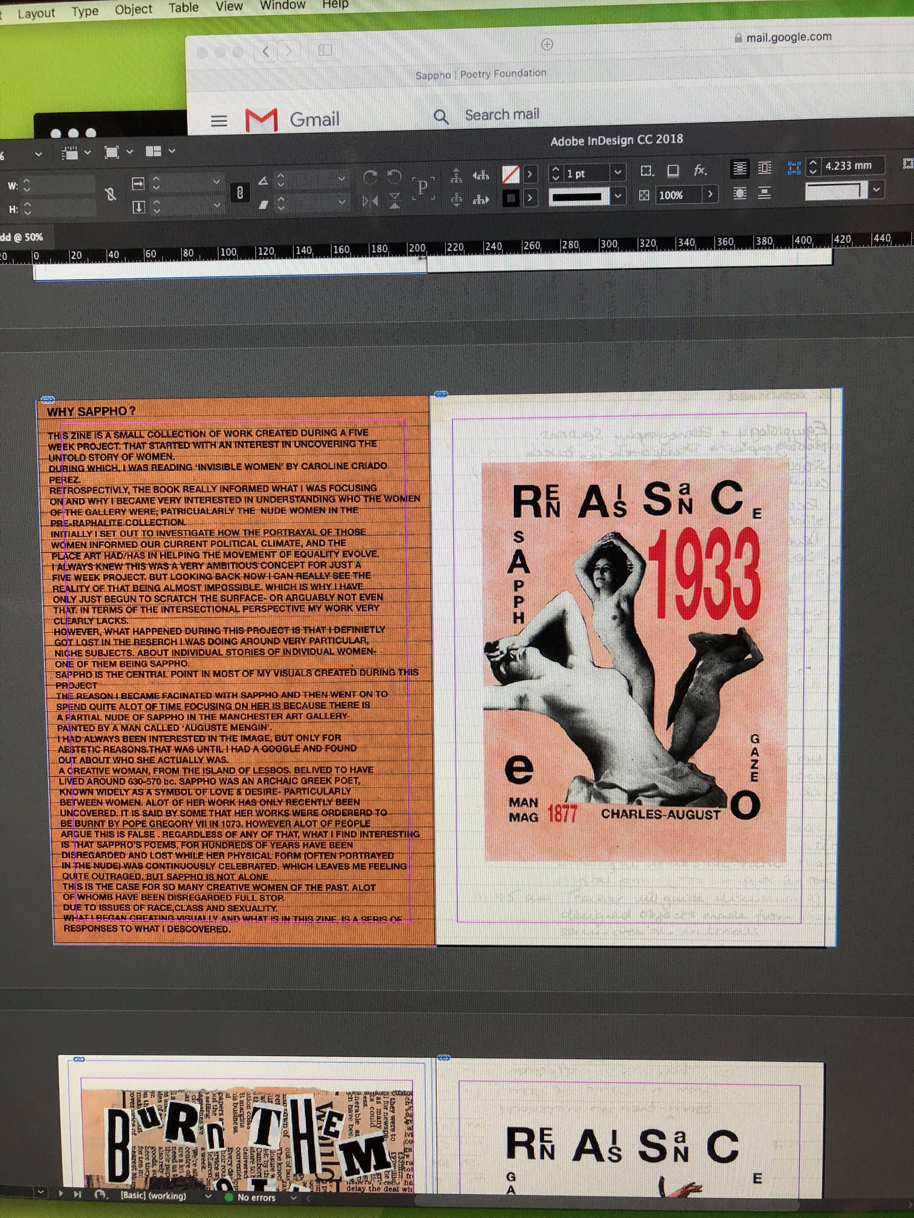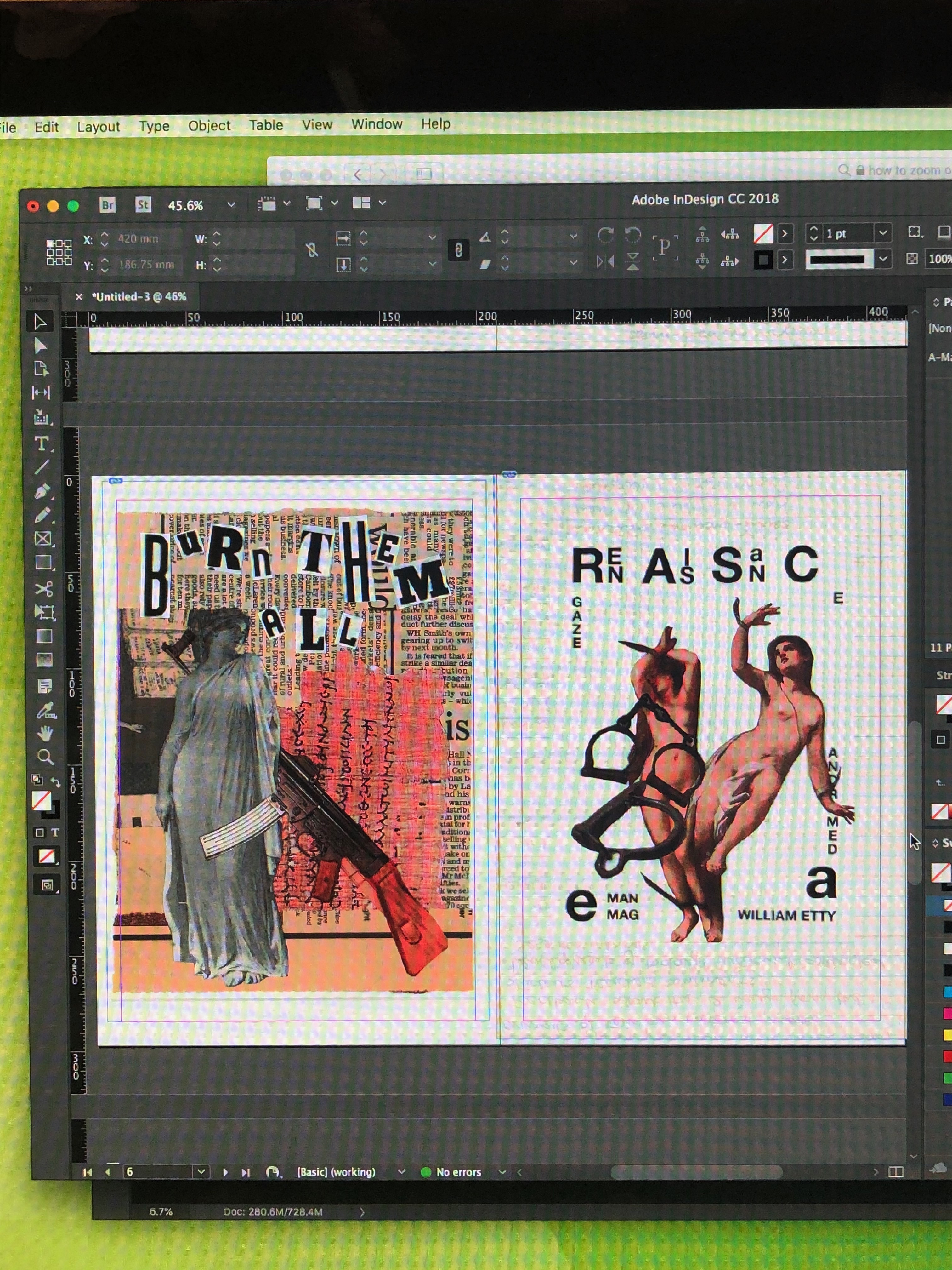 These are a few of my In- design pages whilst the zine was in the final stages of creation.