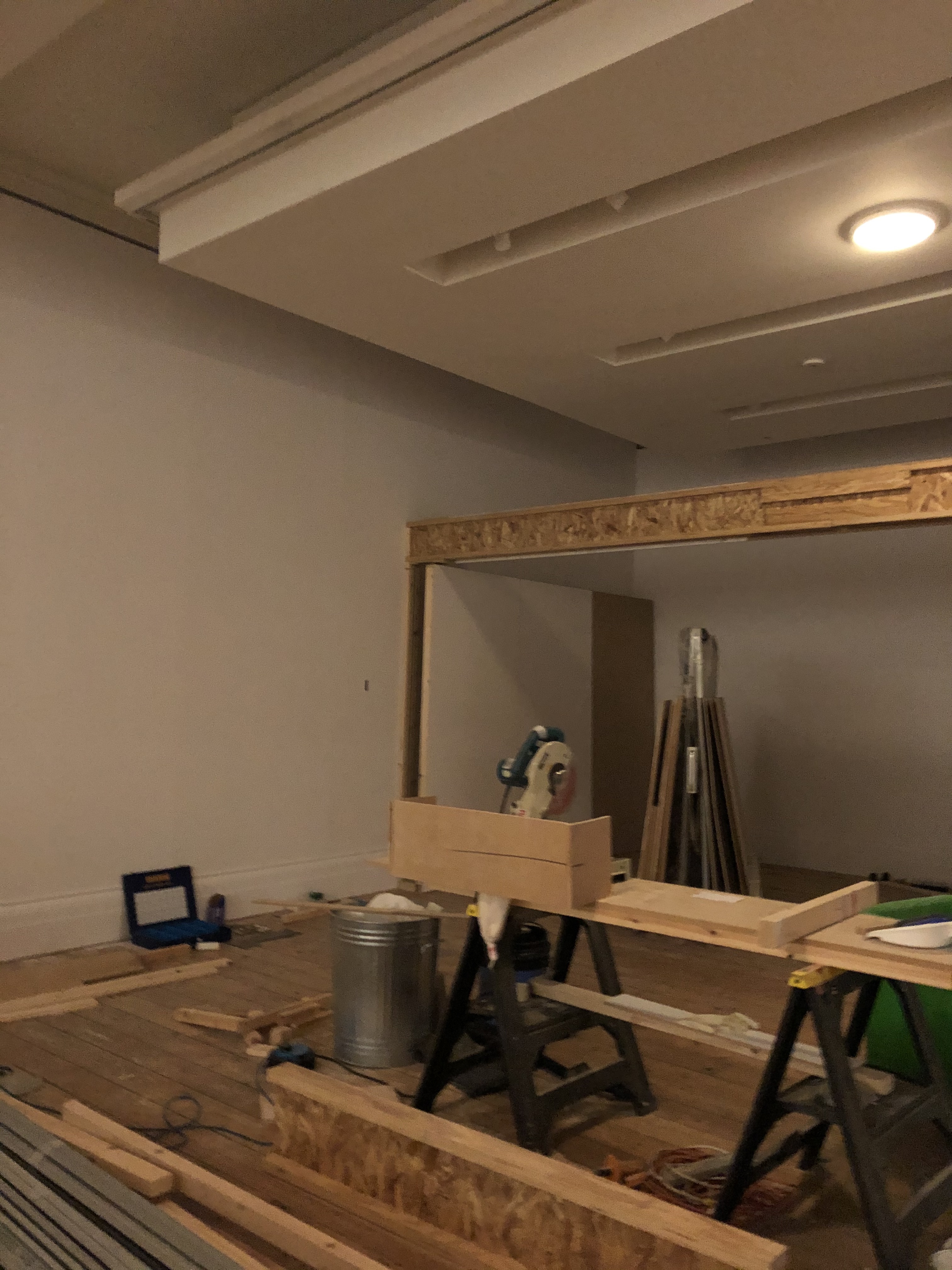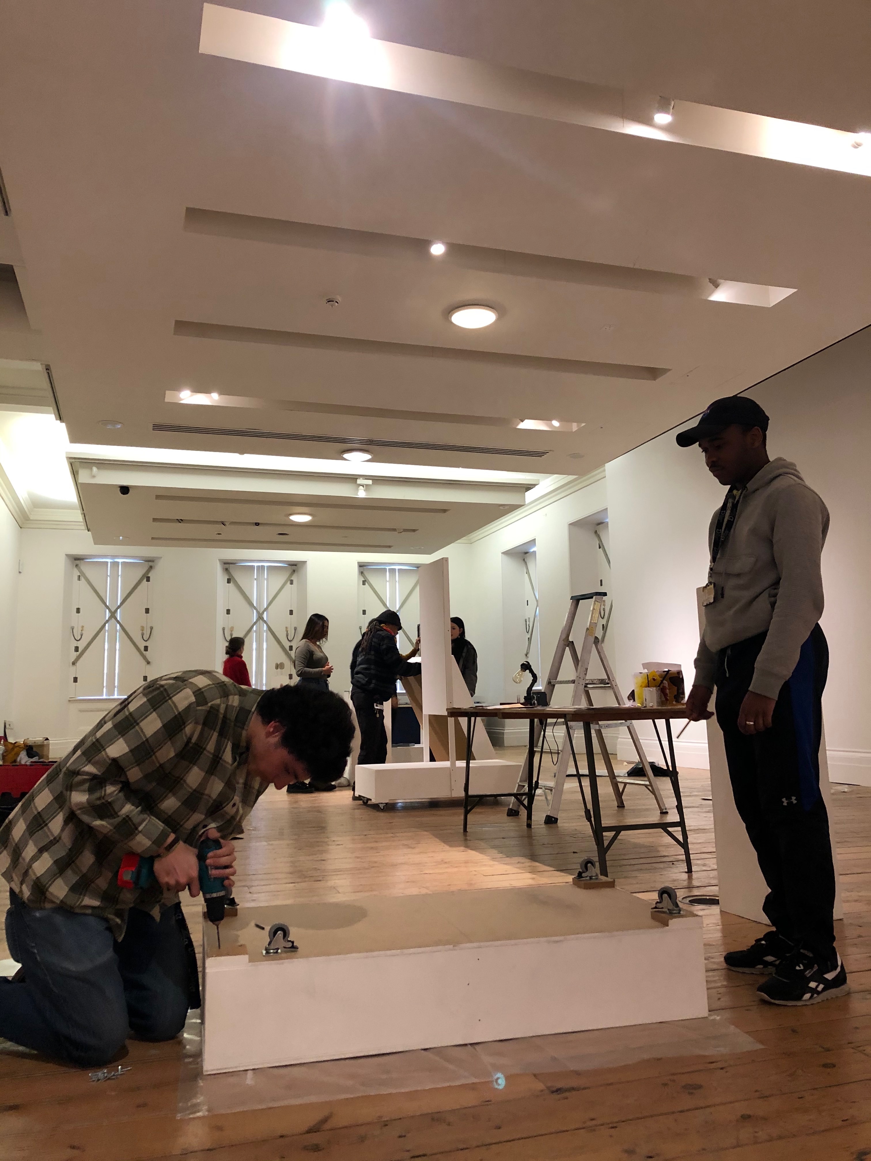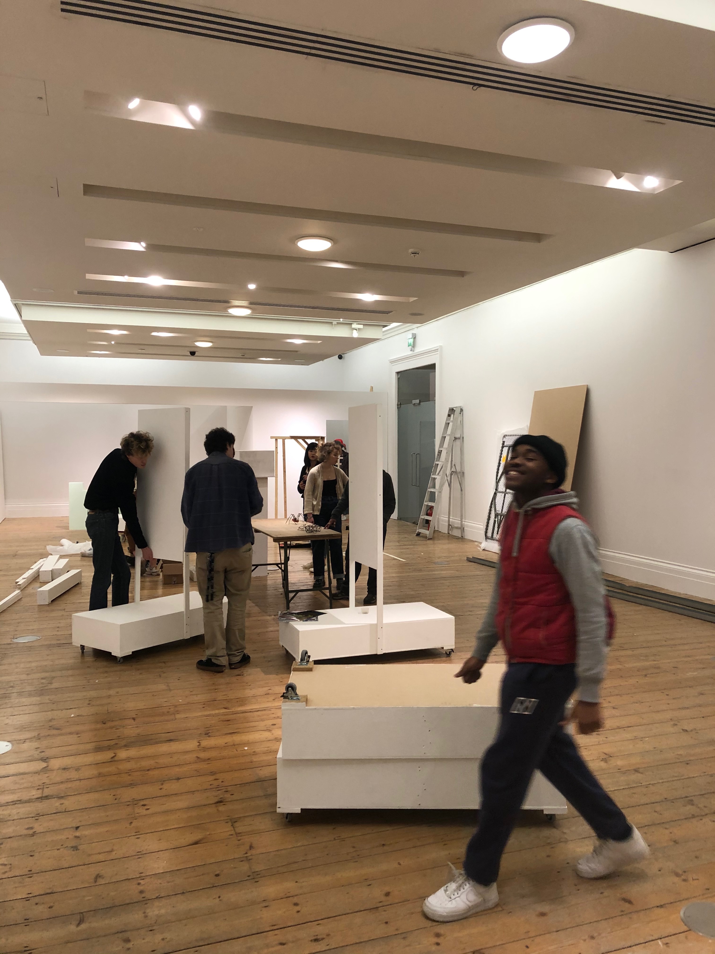 After coming back and having a group meeting, we decided we would make our own structures to exhibit the work and began planning with Cynthia what they would look like and how they would be made. We then organised the class into days over the holidays that we could come in and work on them.