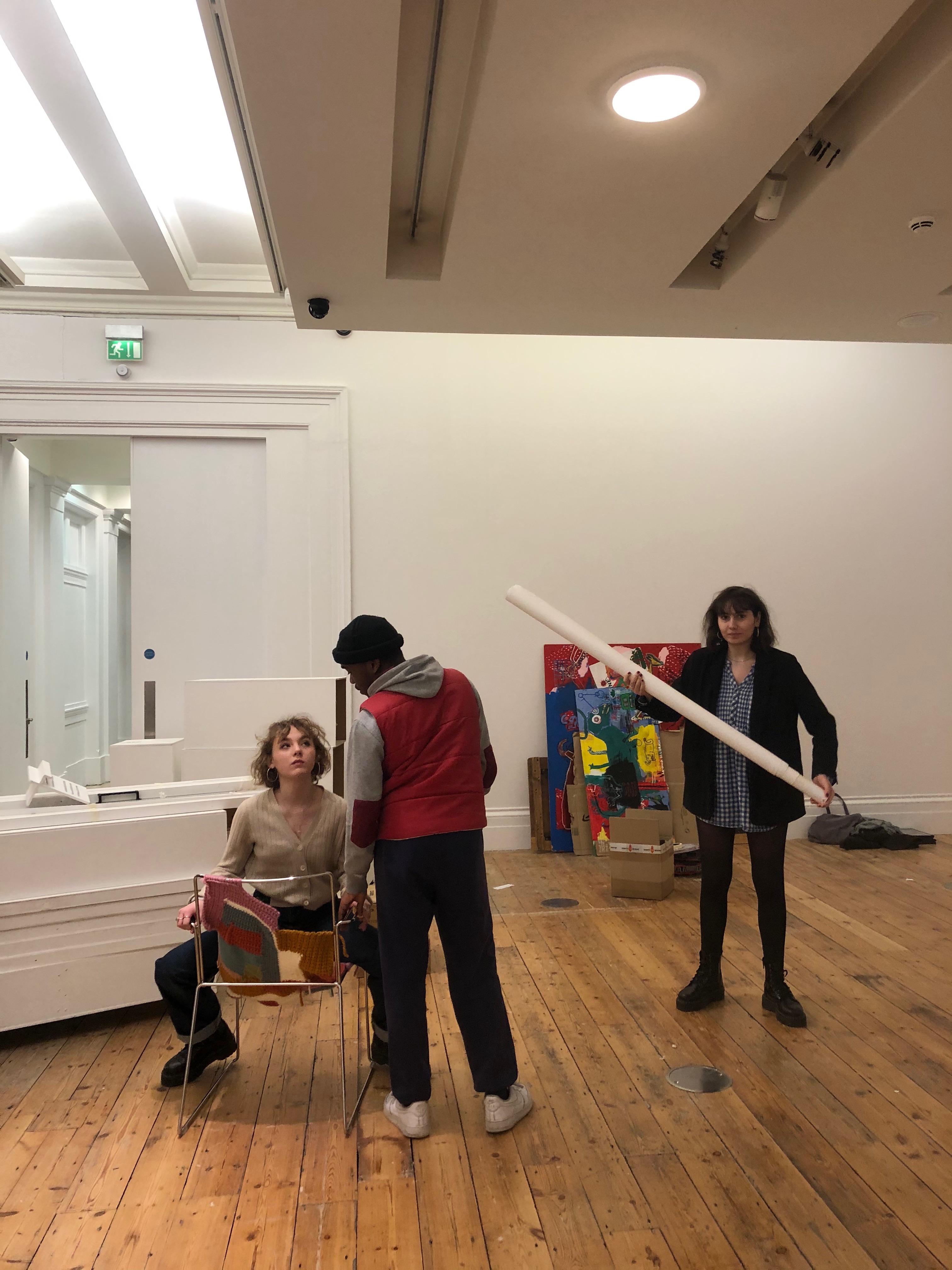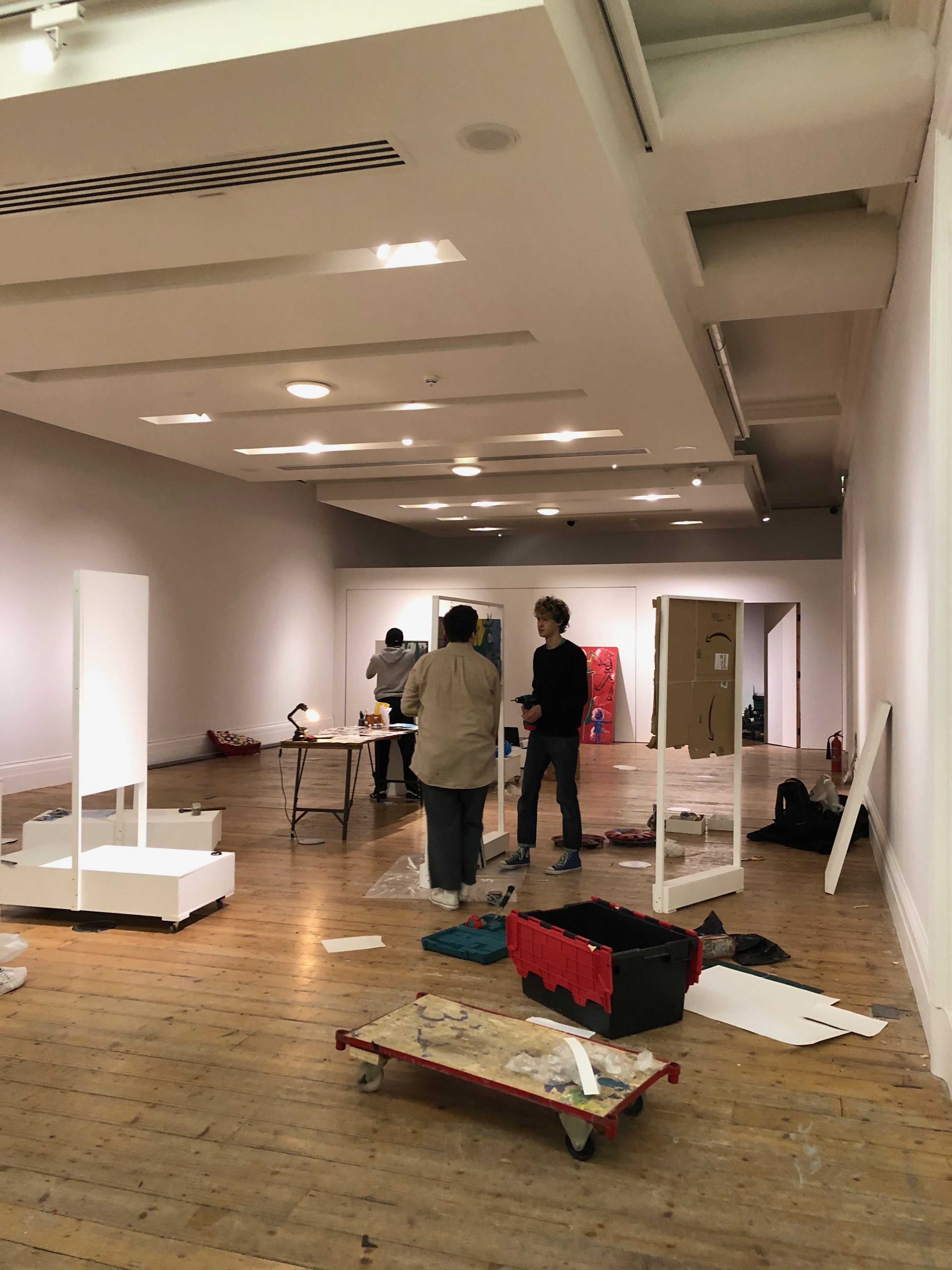 As you can see there are big windows towards the front which was very exciting and also ALOT of space. We began talking about how we’d go about using the space and Emma took us through certain rules the gallery had regarding what and how we used it. Firstly, we were not allowed to put anything on the walls. Which made complete sense but also posed a fair few challenges for us to overcome as a group. Secondly, untested electricals were not permitted/ insured to be used inside the gallery. Again, absolutely makes sense. However, did call for some problem solving on our behalf.
